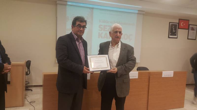 Açıklama: Sakarya Üniversitesi Fen Edebiyat Fakültesi ve SAÜ Alegori ve Şiir Topluluğunun düzenlediği "Kültür ve Edebiyatımızda Sezai KARAKOÇ" paneli, Prof. Dr. Ersin Nazif GÜRDOĞAN ve Dr. Şakir DİCLEHAN'ın katılımıyla Fen Edebiyat Fakültesi C Blok Konferans Salonunda gerçekleştirilmiştir.