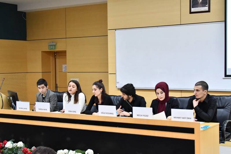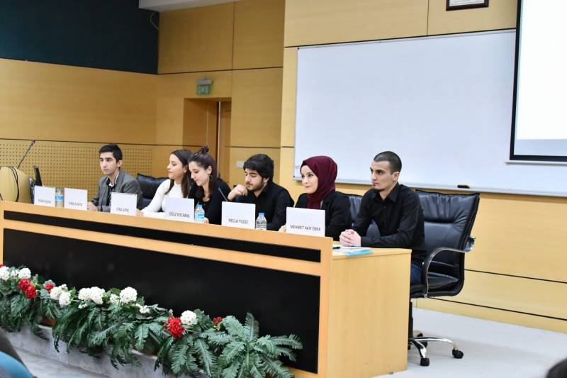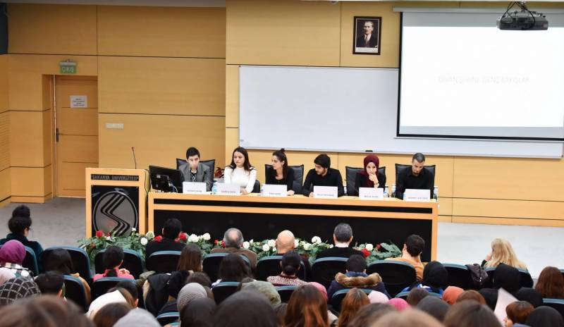 SAÜ Kültür ve Kongre Merkezi Prof. Dr. Fuat Sezgin Salonunda gerçekleşen panele bölümümüz öğrencileri Burak Şahin, Damla Kaya, Esra Genç, Oğuz Kocabaş, Necla Yıldız ve Mehmet Akif Öbek konuşmacı olarak katıldı.